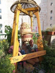 The urban Bio-dynamic centers in Israel for urban beekeeping are aimed to introduce the bee world and to teach the craft of bio-dynamic beekeeping. This growing method is substantially friendlier towards the bees in comparison to industrial beekeeping. This method allows the bees to live sustainably, consume their own products and to stay healthier. Another aim of these centers is to encourage and promote growing bees on the city’s rooftops. In this way the centers aid in the re-establishment of honey bees to the city and the environment in general.